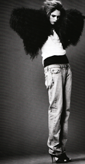 The different textures and contrast in the garments caught my attention in this photograph. The volume of the jacket worn over layered singlets and paired with the slouchy boyfriend jeans and heels... Its kind of unexpected, but it works.
